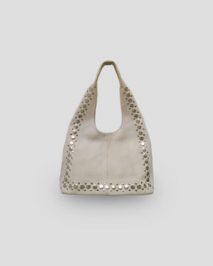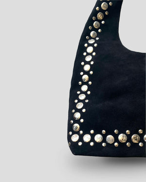 Meet the Velys Suede Bag, a chic hobo bag made from 100% genuine Grade A Indonesian suede leather. With its soft texture and bold round metal studs along the front and sides, this bag delivers a modern statement while maintaining timeless elegance. This bag Ideal for casual days, stylish brunches, or laid-back gatherings. Each Velys Bag is handmade by skilled artisans in Bali, blending functionality, fashion, and authentic local craftsmanship.