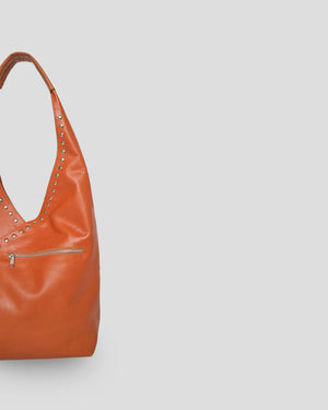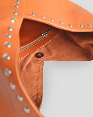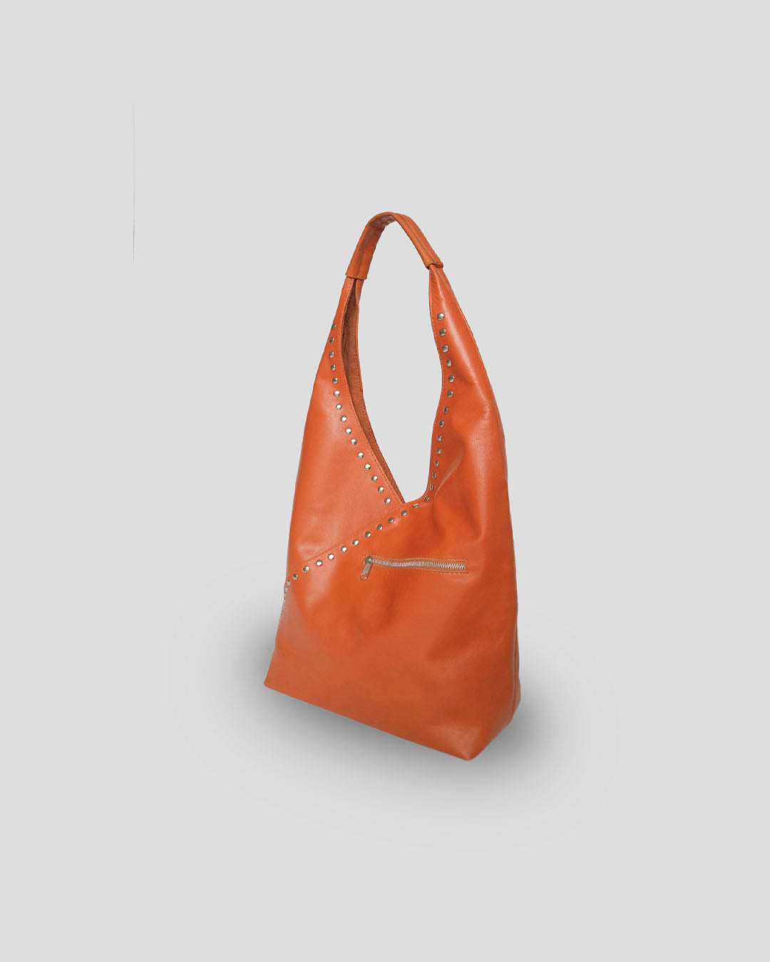 Patrick Bag bold genuine goat leather with stud accents and front zipper