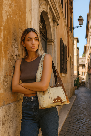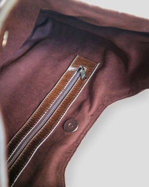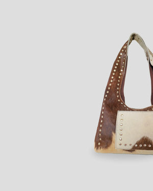 Tita Cow Print Bag is a unique hobo bag crafted from 100% genuine hair-on cowhide leather with a natural cow print pattern. Every detail is carefully handcrafted by skilled Balinese artisans, and each bag features a one-of-a-kind hair pattern, making every piece special.