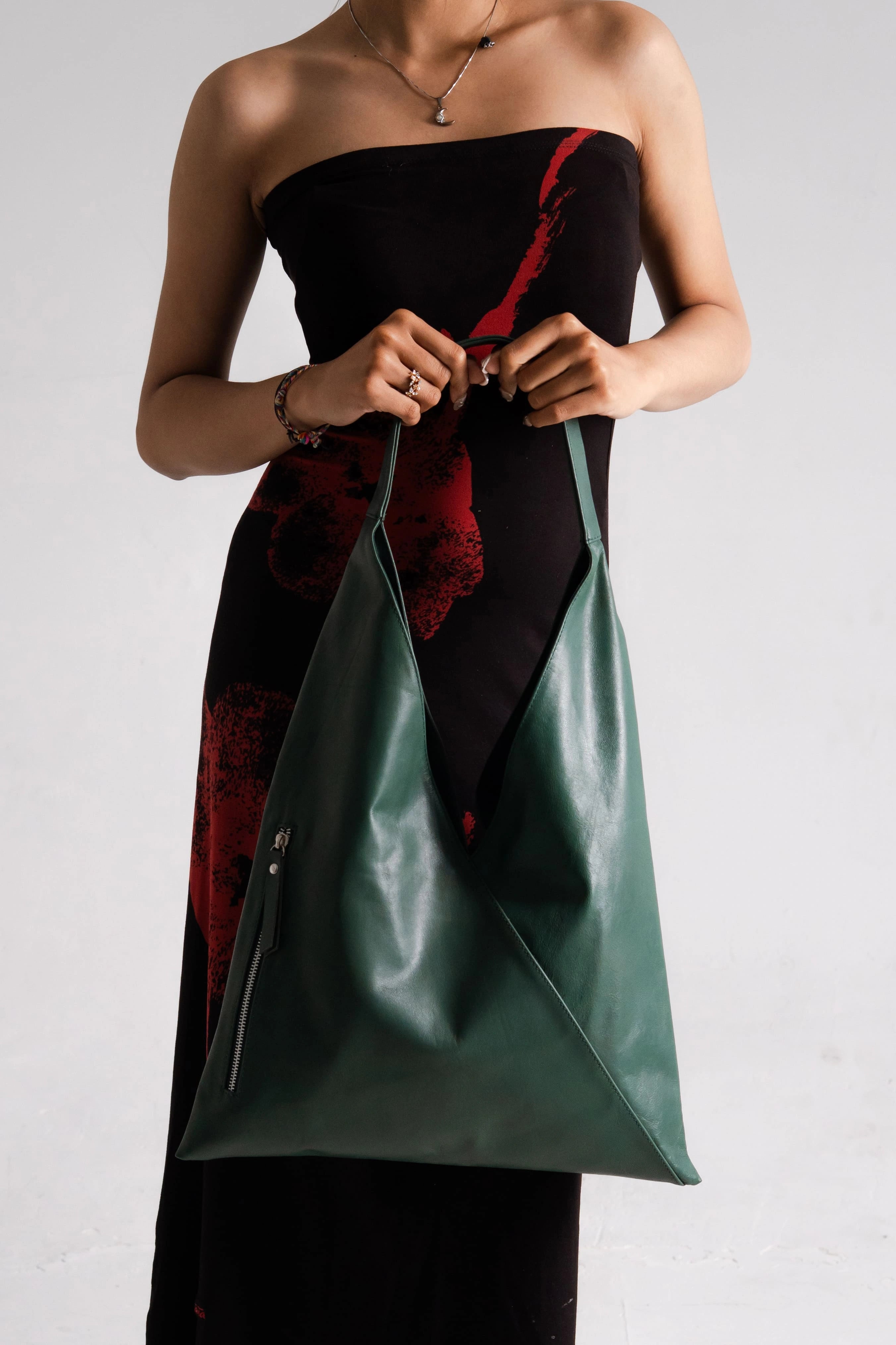 Moon Pluz Bag premium goat leather shoulder bag with silver stud detailing