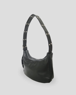 The shoulder strap is adorned with metal eyelet studs, adding a modern accent while also functioning as an adjustable strap, so you can set the perfect length for all-day comfort.
