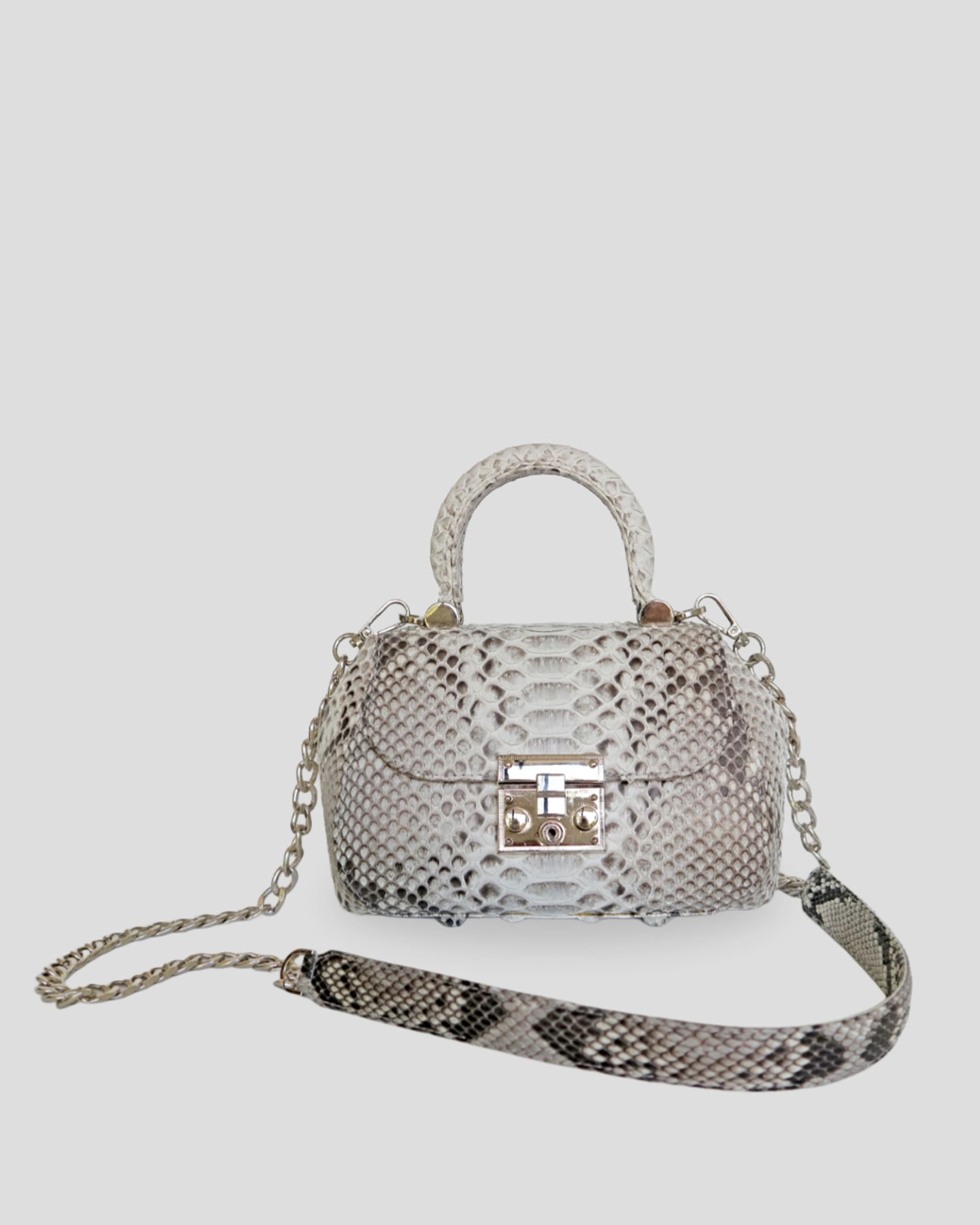 • Strap: Detachable chain strap with python leather shoulder pad